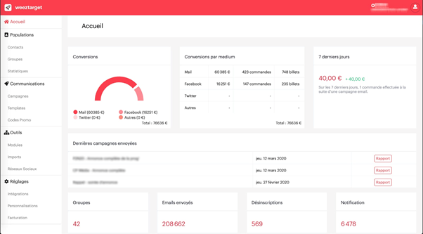 - Monitoring the impact of your WeezTarget campaigns. Each campaign is tracked, providing you with information on your send, open and click-through rates and the turnover generated directly by your campaigns.