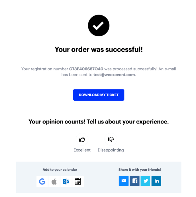 “Ticket purchased for [name of your event]. Get your ticket via @weezevent here: [link to your website]”