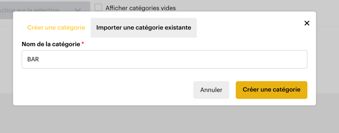 - Vous avez également la possibilité d'importer une catégorie d'un autre événement si les mêmes articles sont disponibles (En cliquant sur Importer une catégorie existante)